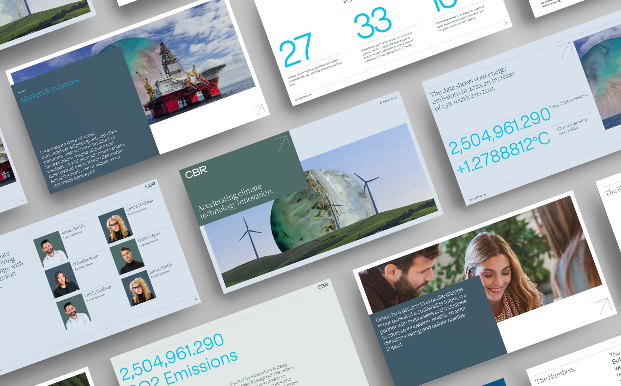 Central to CBR’s fresh visual identity are artworks that exude a striking, charming, & inspiring essence. These bespoke creative brand assets seamlessly blend three core elements – the circle asset, industry & nature. The carefully selected landscape images, meticulously cut out, create a backdrop for our distinctive circle asset. Meanwhile, the grid asset, consistently overlaid onto the background image, maintains a cohesive and visually appealing element across all artworks.